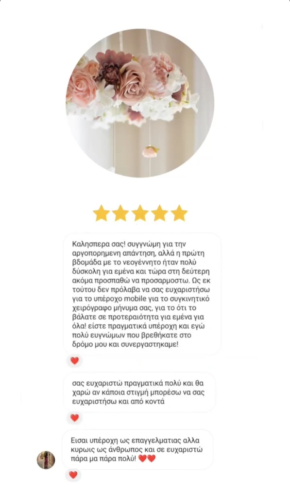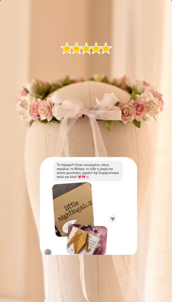 ”Ενώ κρεμούσα τα origami crane mobile των παιδιών μου, παρατήρησα τα σχέδια τους, τα χρώματα, αντιλήφθηκα πως ο,τι βλέπω το έχει κάνει η δημιουργός του Little Nightingales με τα χέρια της, ενώ το μυαλό της μπορεί να τρέχει παραλληλα σε χιλιάδες σκέψεις, προβληματισμούς, έγνοιες, χαρές,…