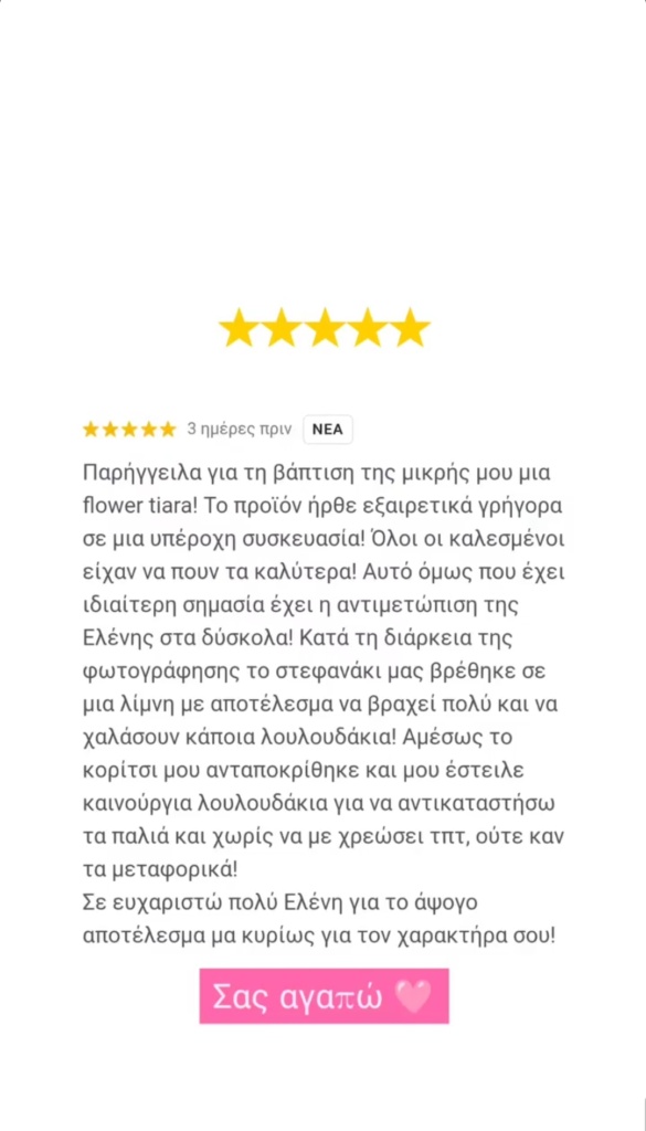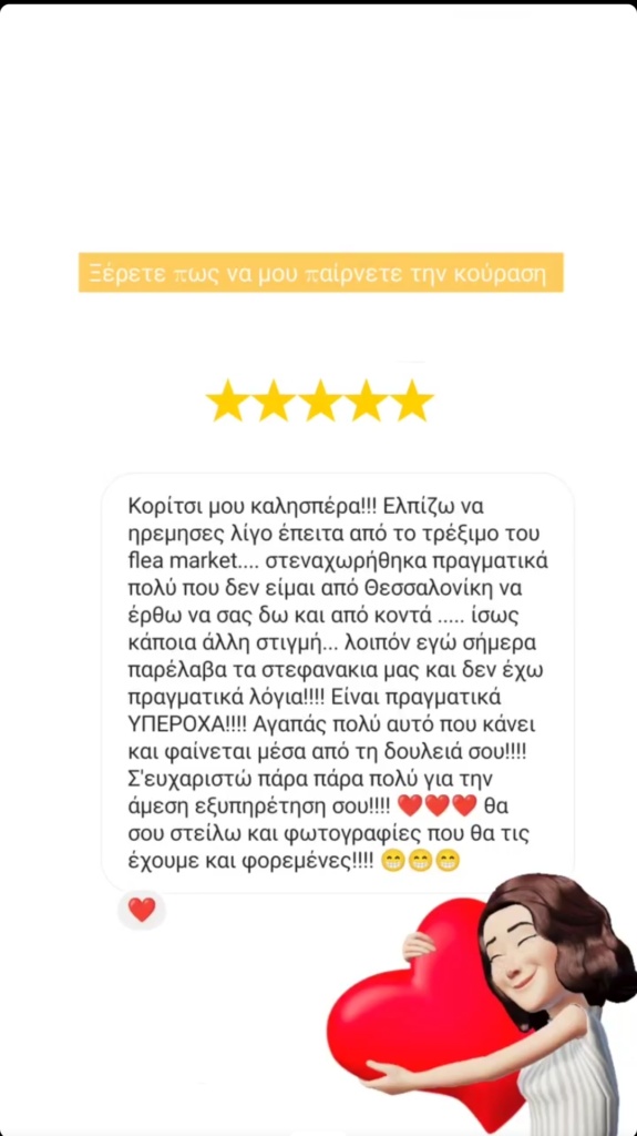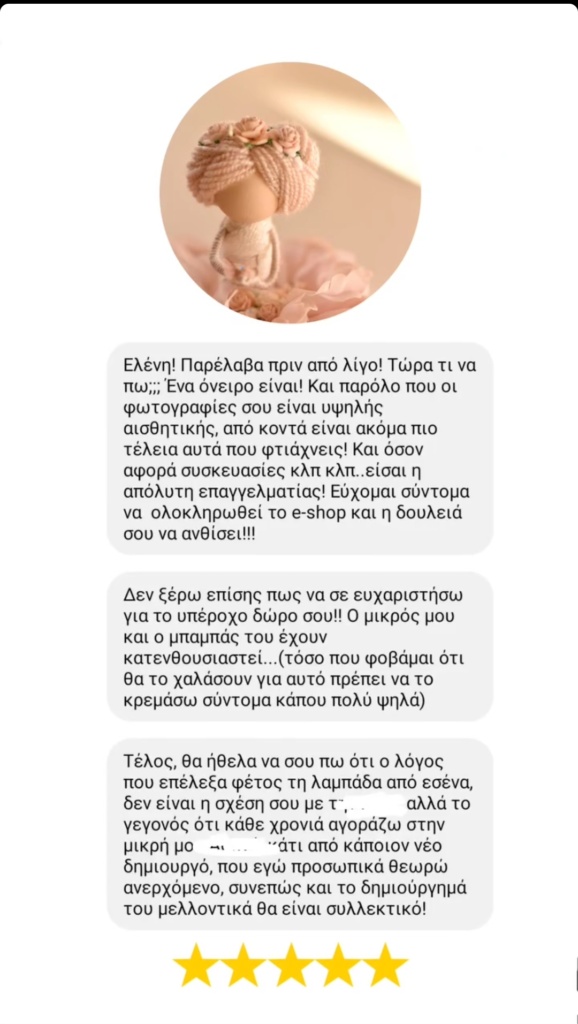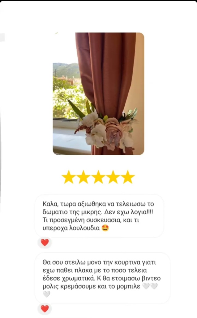 ”Μα τι τέλεια συσκευασία πάλι!!! Τι όνειρο το περιεχόμενο!!! Νομίζω δεν θα τα βάλω στις κουρτίνες! Θα τα βάλω στα χέρια μου!!!! Ευχαριστώ πολύ!!!!”