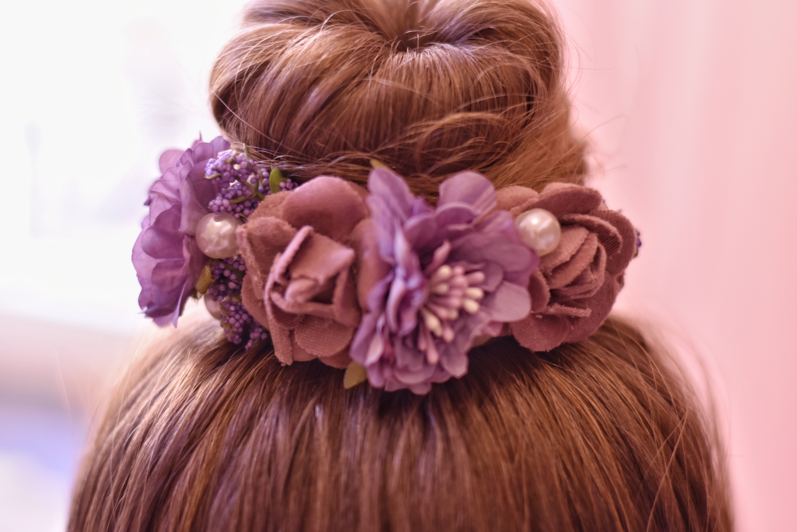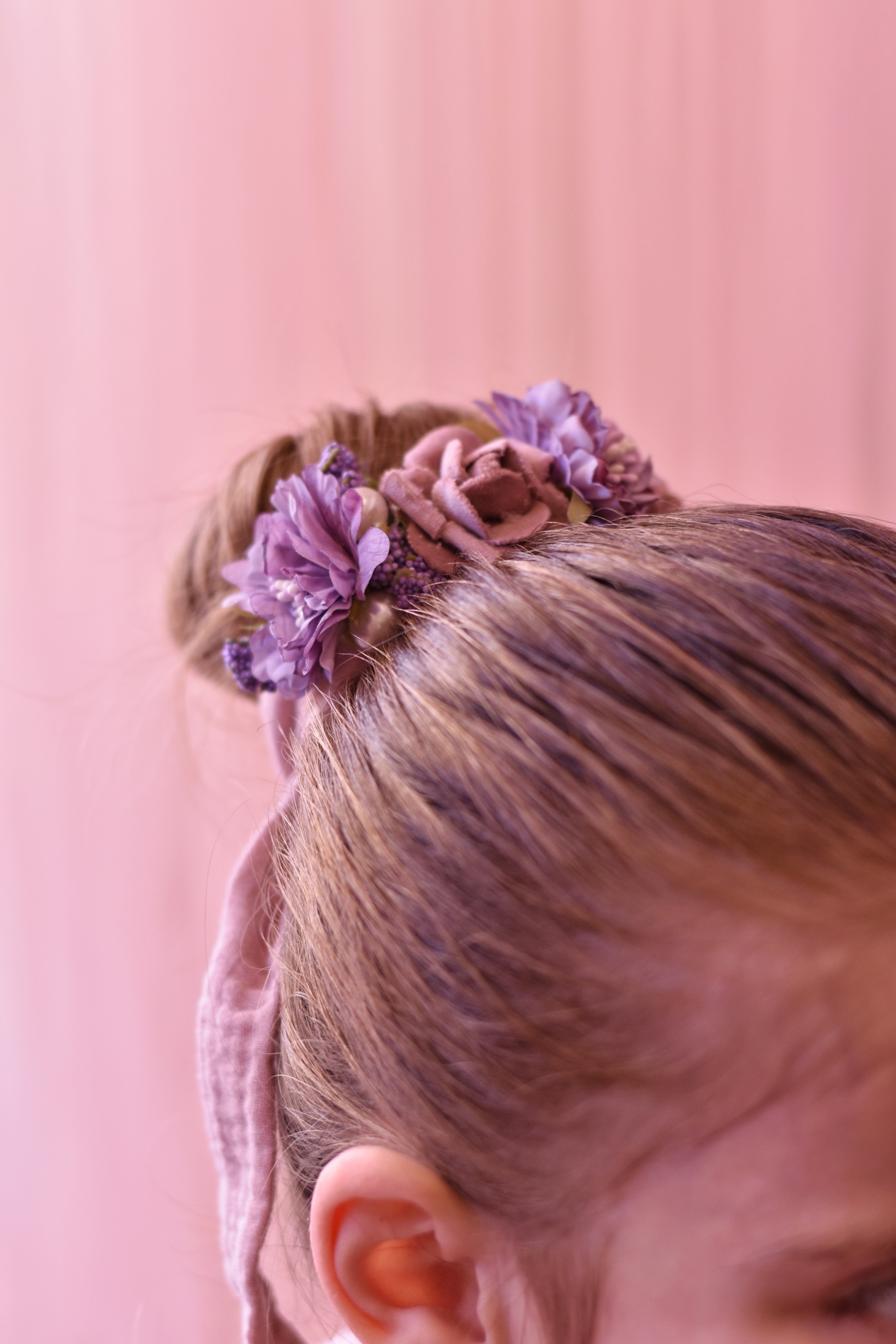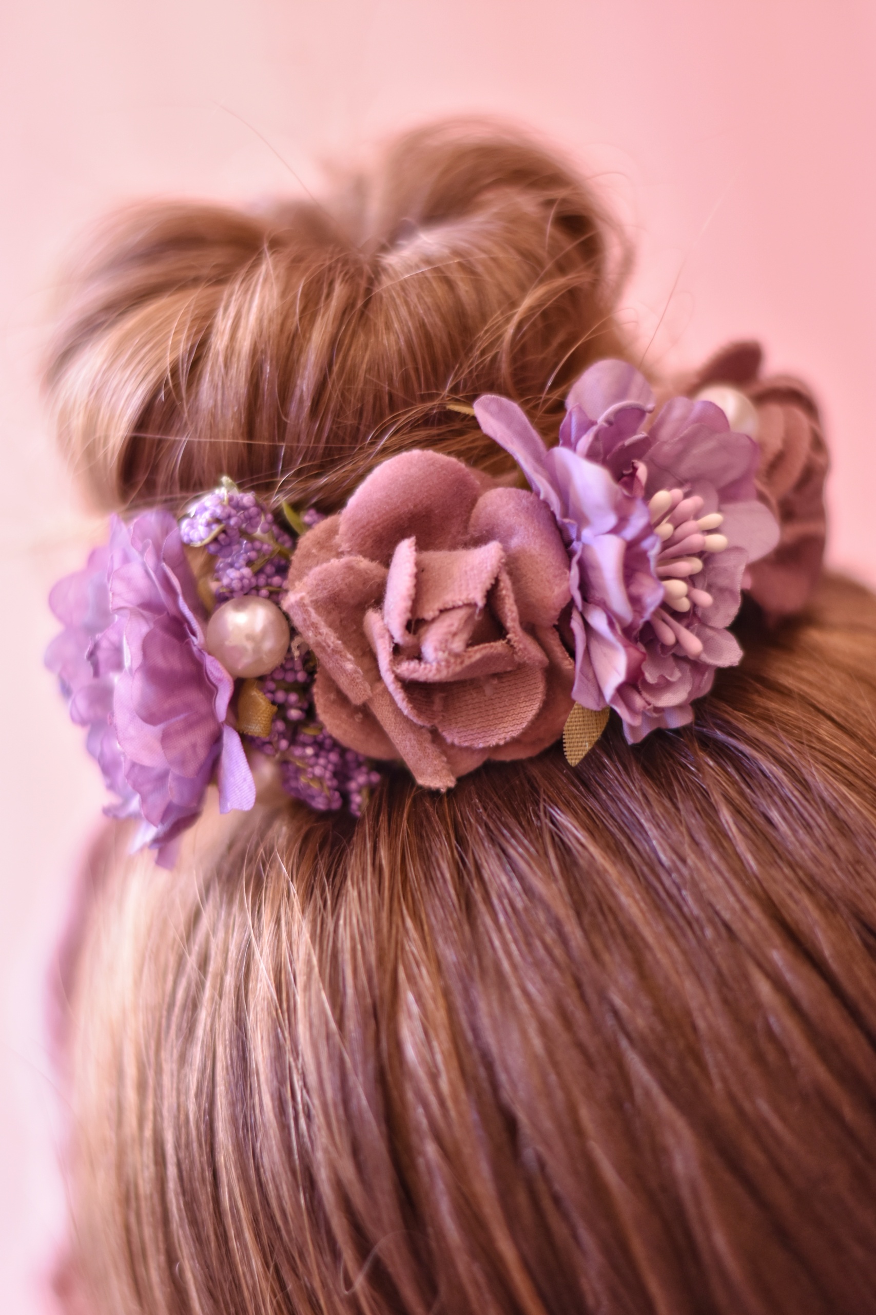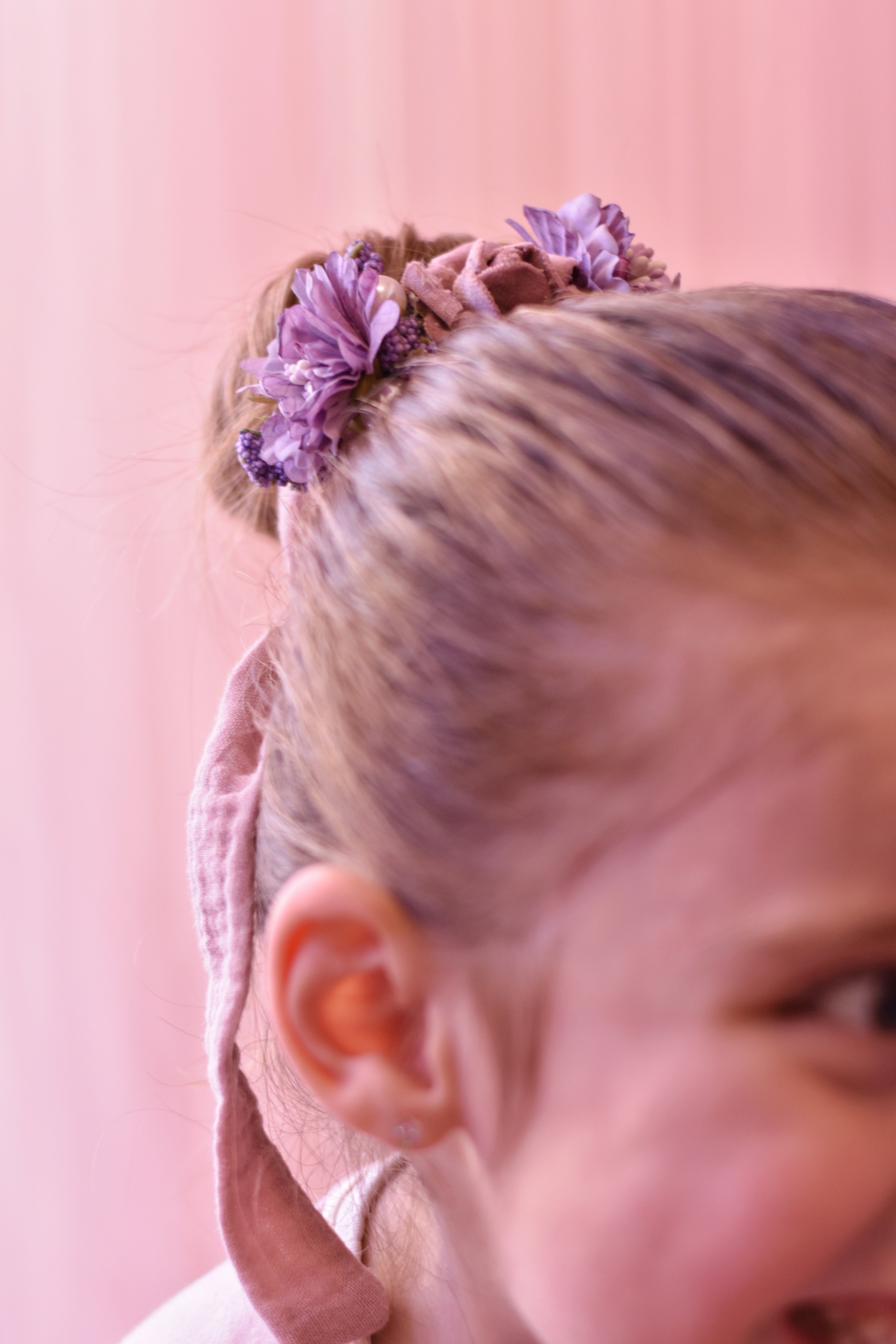 Σε μωβ χρώμα, και διακοσμητικές περλίτσες και μήκος σύνθεσης 13 εκατοστά.
