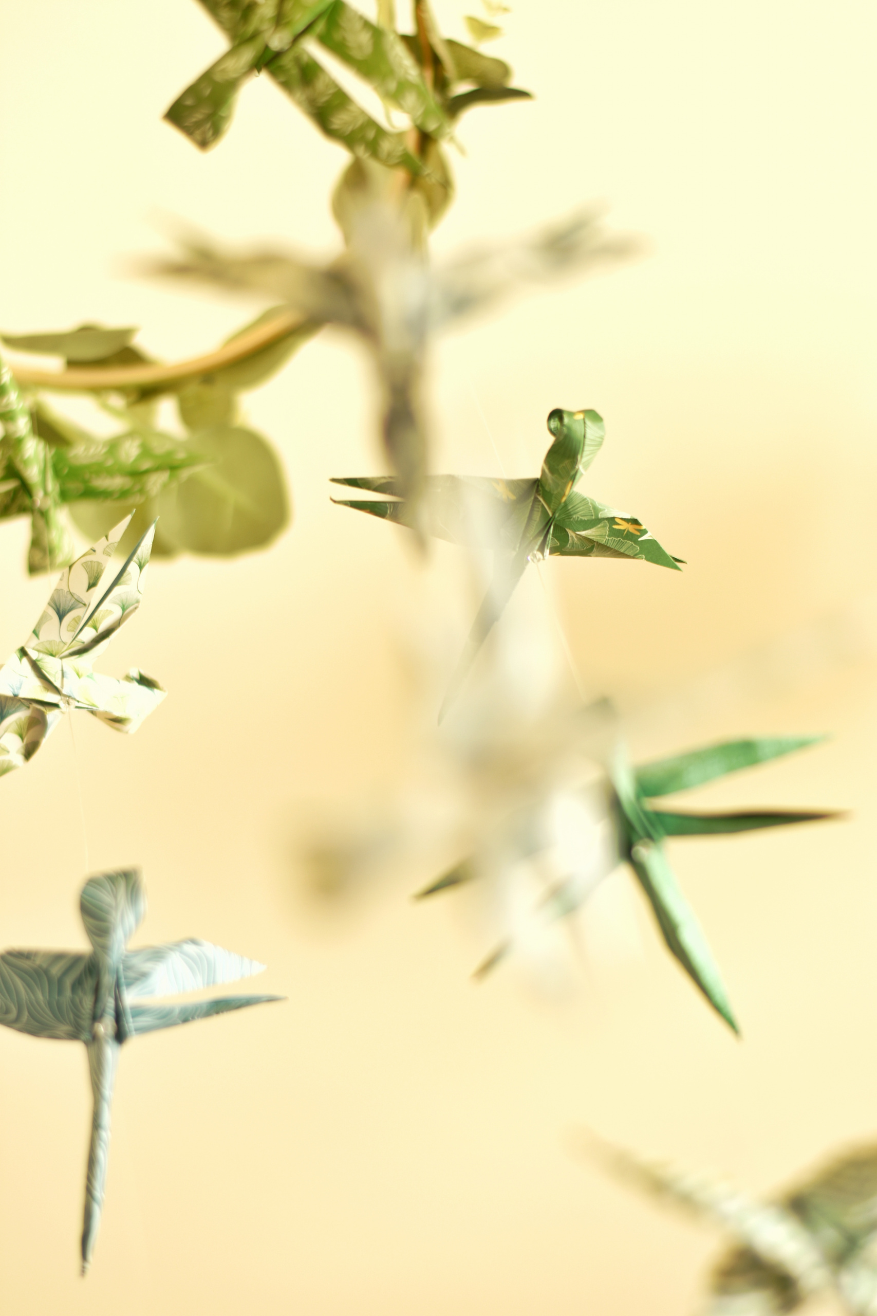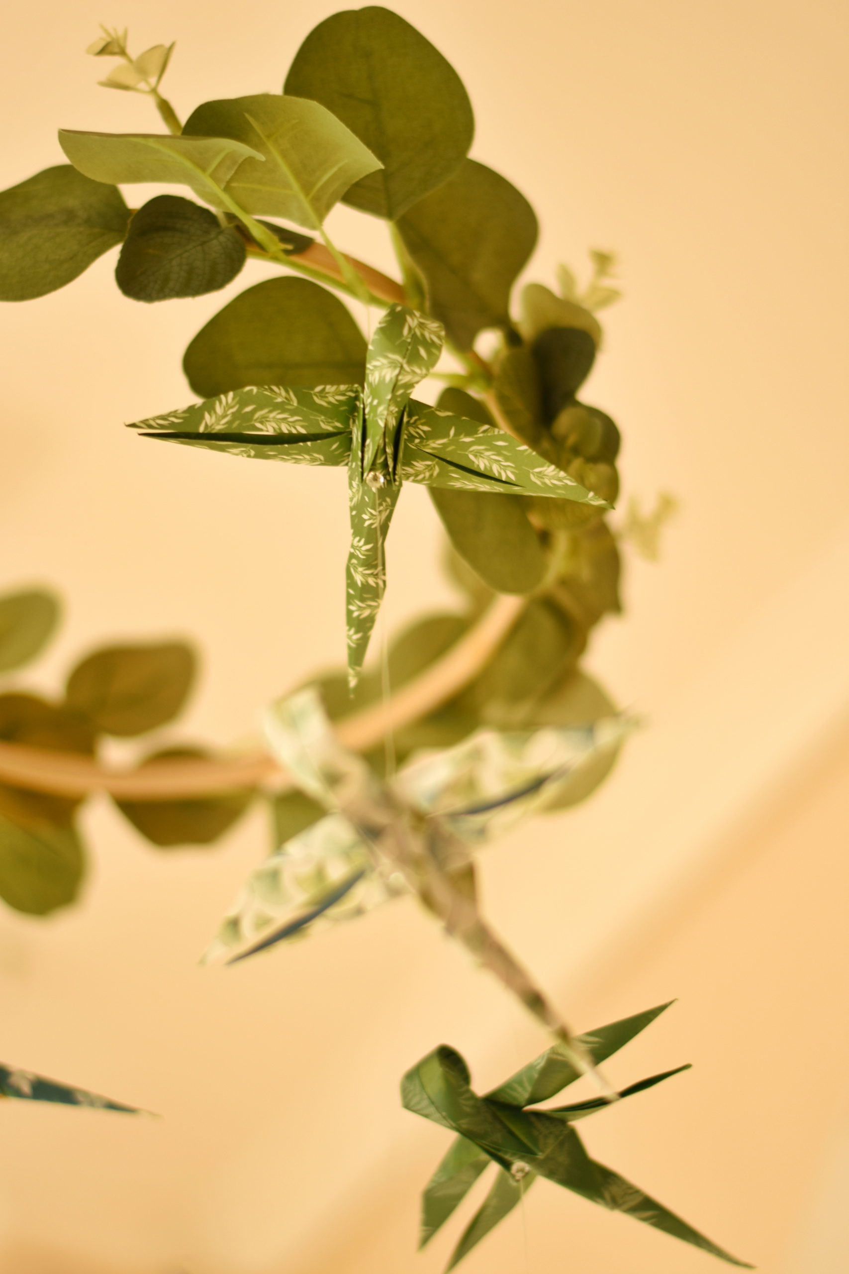 Αποτελείται από 12 λιβελούλες σε πράσινες αποχρώσεις, ενώ το στεφάνι του είναι διακοσμημένο με κλαδιά από ευκάλυπτο.